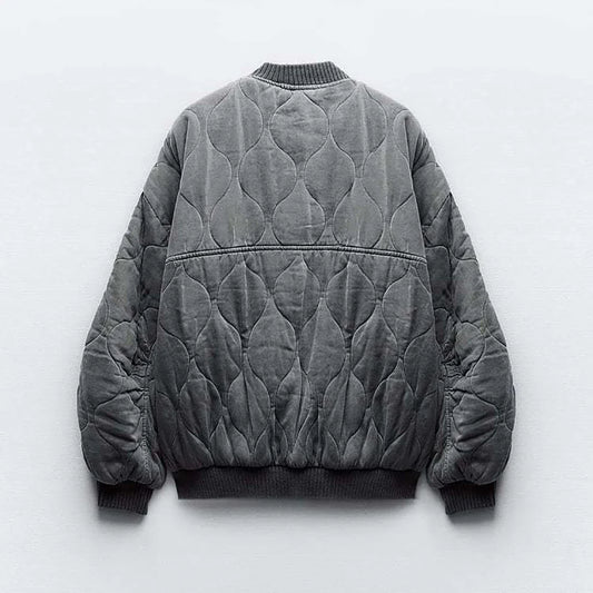 Andrea - Vattert bomberjakke med trykknapplukking og store lommer