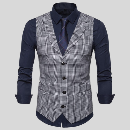 Steven - Slim fit rutete vest med knappe lukking og welt lommer