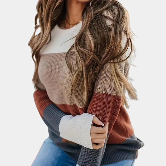 Caroline - avslappet passform fargeblokkgenser med bred rund hals