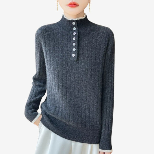 Alice – Langermet Genser med Knapper og Ribbedetaljer