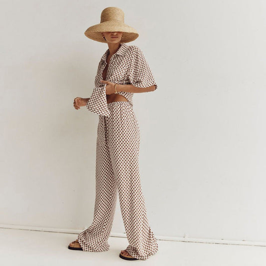 Arwen - Fashinable skjorte- og buksesett med geometrisk trykk