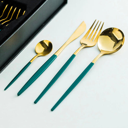 RegalLux - 24-delt bestikksett i mørkegrønn og gull til elegante måltider