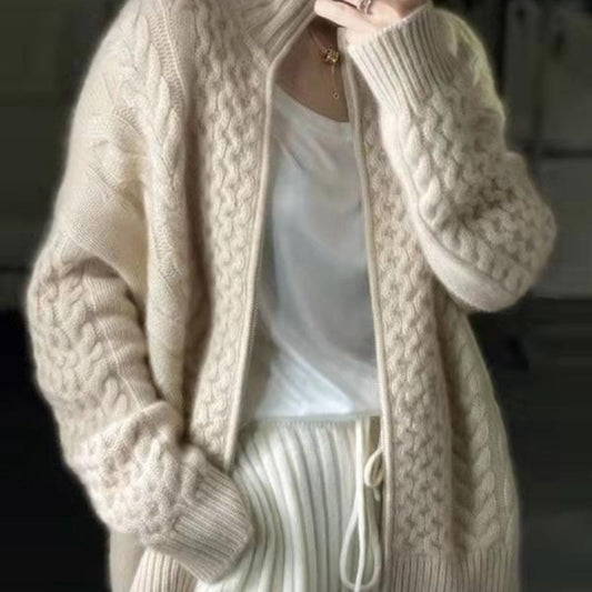 Elise - Langermet Cardigan med Glidelås og Løs Passform