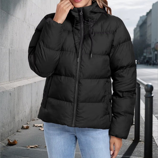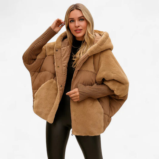 Fenna – Polstret Jakke med Hette og Ribbestrikkede Ermer