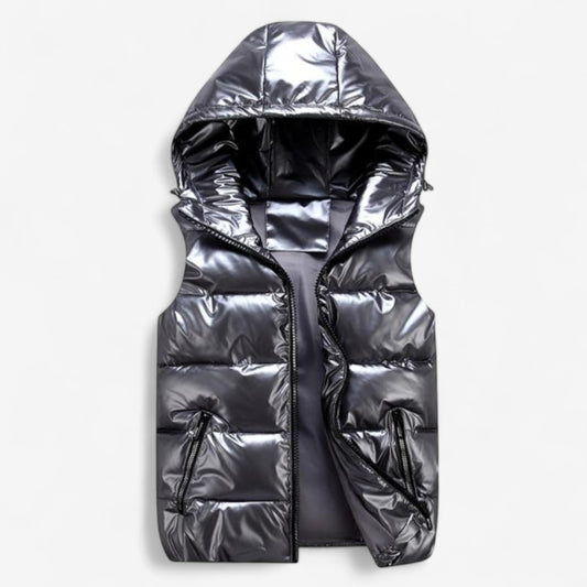 Manfred – Ermeløs polstret jakke med hette og glidelås