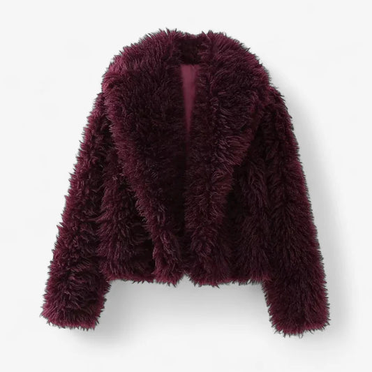 Nathalie – Fuskepelsfrakk med Lange Ermer og Løs Passform