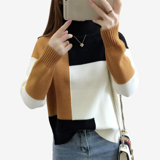 Livia – Langermet Høyhalset Genser med Ribbedetaljer