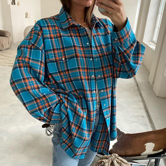Kristin – Rutemønster skjorte med knappestolpe og lange ermer