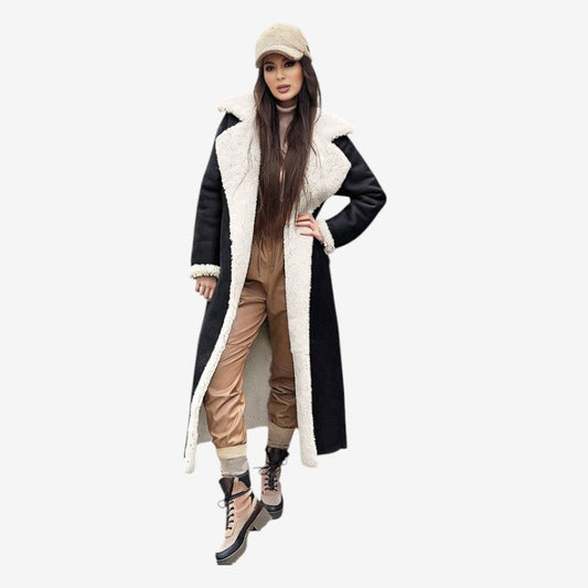 Marthe – Lang kåpe med lommer jakkeslag og lange ermer