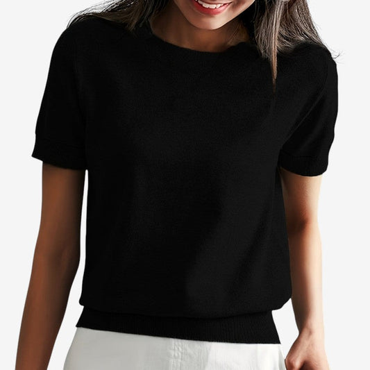 Isla – Kortermet T-skjorte med Rund Hals og Ribbestrikket Kant