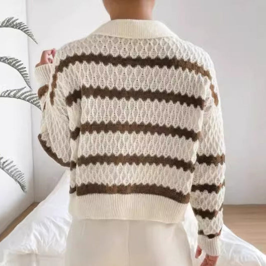 Leona – Genser med jakkeslag, stripet mønster og lange ermer