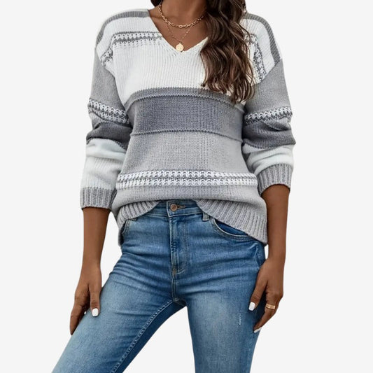 Nadia – Genser med V-hals lange ermer og ribbede kanter