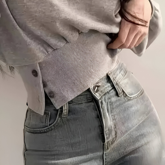 Nora – Bluse med rund hals, lange ermer og knappdetaljer