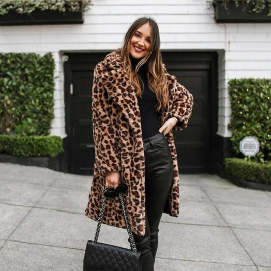 Johanna – Langermet Leopardmønstret Frakk med Lommer