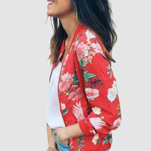 Hannah – Langermet Jakke med Blomstermønster og Glidelås