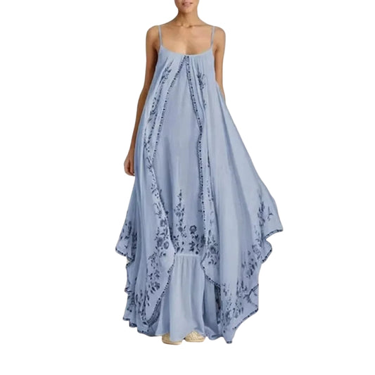 Naya - Modren Maxikjole med justerbare stropper og brodert kant