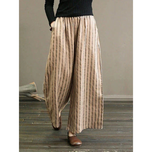 Rhea - Bukser med vidde ben med vertikale striper og avslappet passform