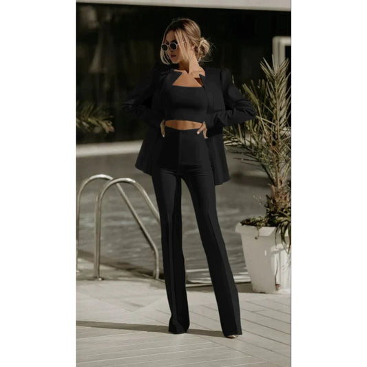 Jasmine – Stilig 3-delt sett med lange ermer blazer og fleksible bukser