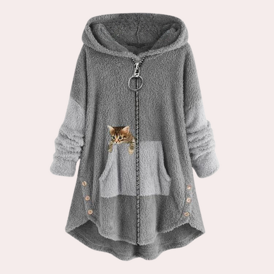 Lily - Koselig hettegenser med glidelås med kattedesign og A-linje passform