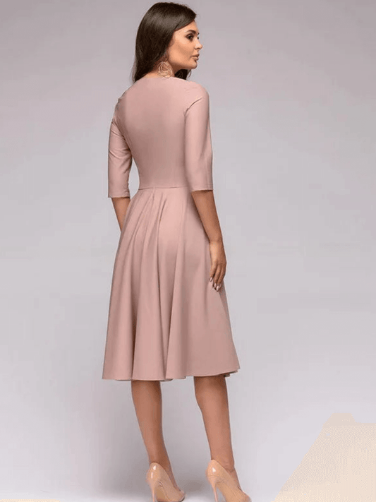 Samantha - A-line kjole med knyting i midjen og trekvart ermer