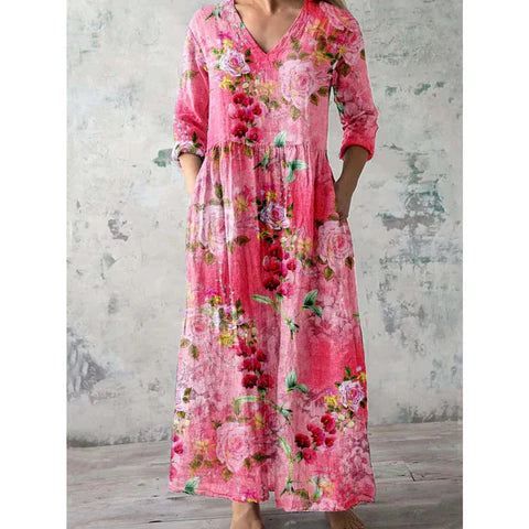 Ellie - Romantisk blomstret Maxi-kjole med spaghetti-stropper