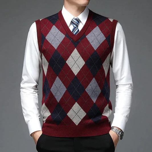Franz - Casual Ermeløs Rutet Trykk V hals Genser
