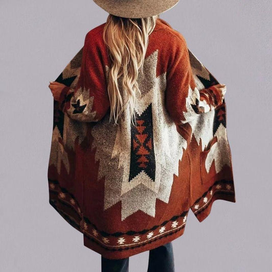 Olivia - Cardigan med åpen front og dristig geometrisk design