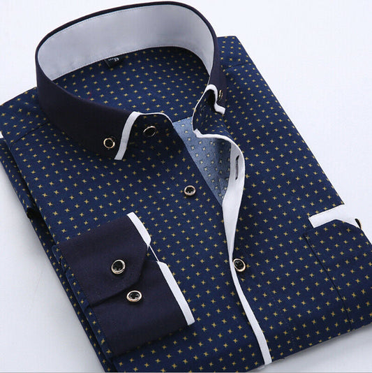 Nathan - Kontrastkrage med polkaprikkedetaljer på skjorte