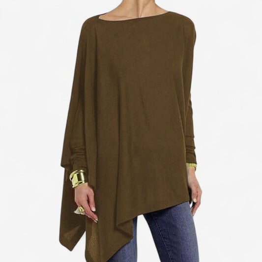 Greta – Løs Bluse med Lange Ermer og Rund Hals