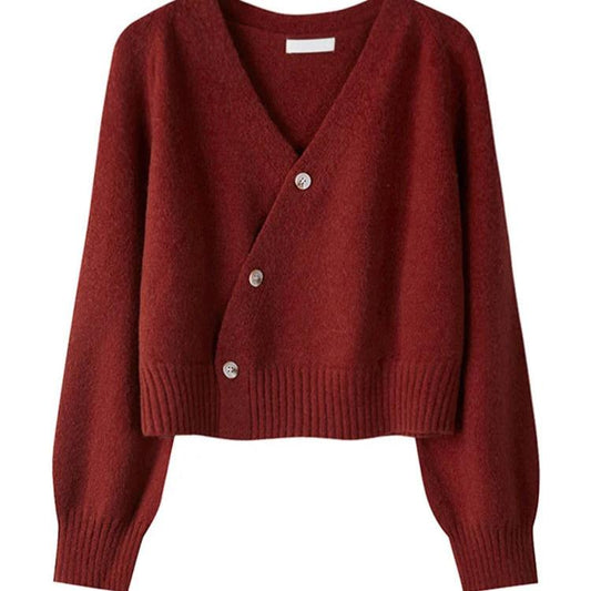 Freya - Elegant V hals Kasjmirgenser med Lange Ermer og Skjeve Knapper for Varm Komfort