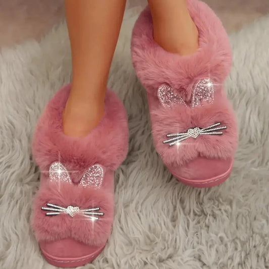 Luna - Bedårende tøfler med kattemotiv og strassdetaljer