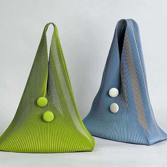 Celina – Moderne foldet toteveske med trekantet form og to-knapp lukking