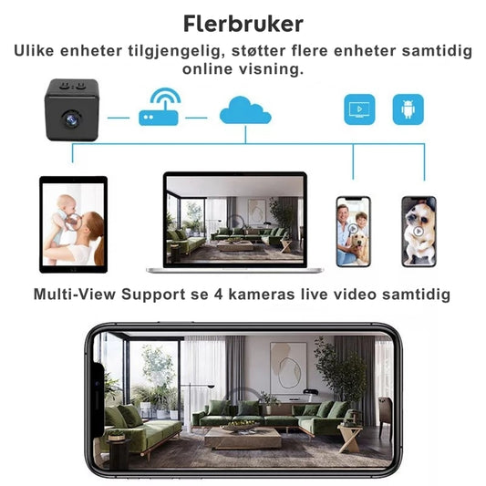 SecureCam - Trådløst overvåkingsminikamera med bevegelsesdeteksjon og nattsyn