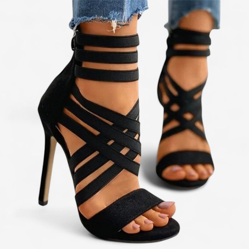 Alverra – Høye Hælsandaler med Åpen Tå og Glidelås Bak
