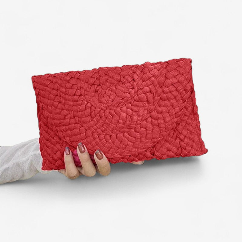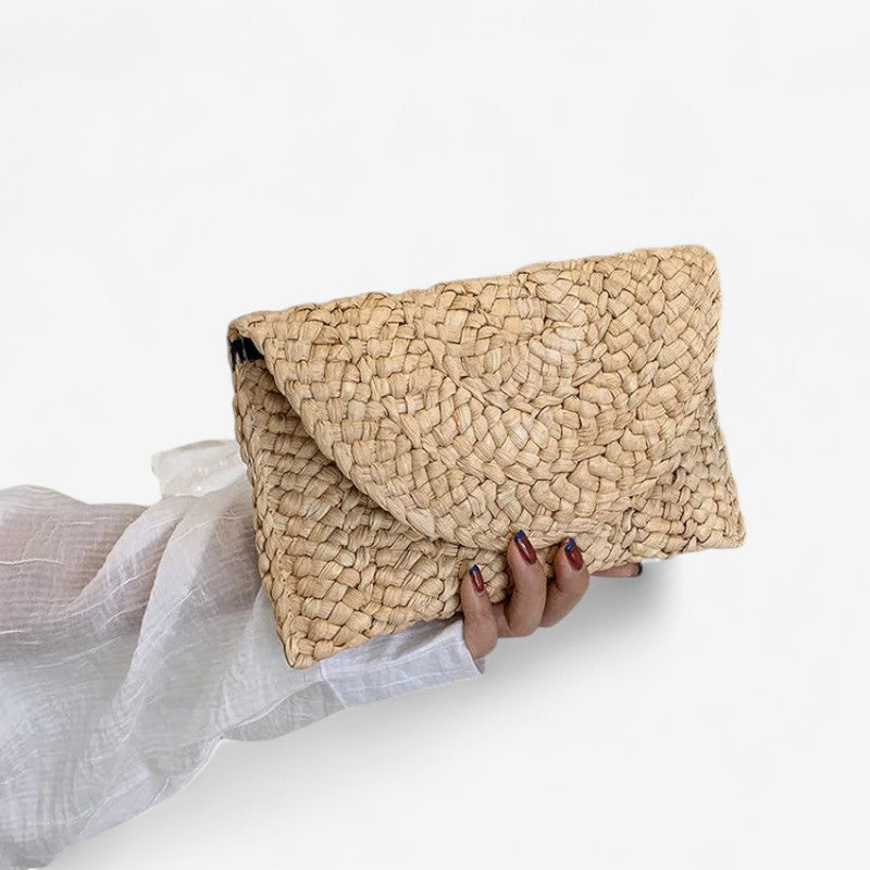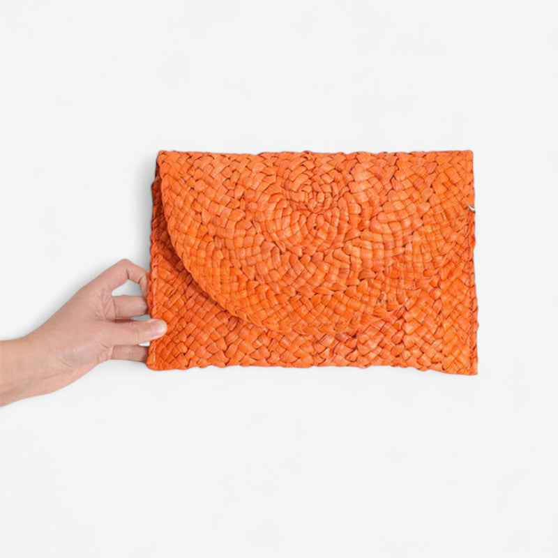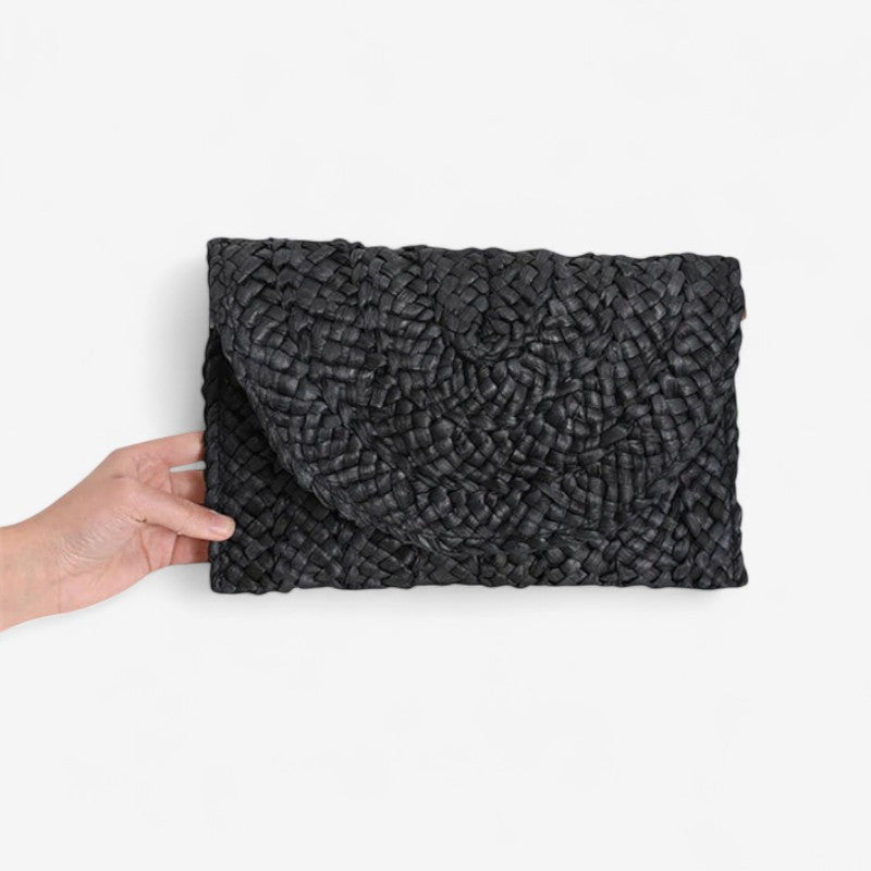 Aurielle er en clutchveske med en stor lomme. Vesken har en rektangulær form, glatt polyesteroverflate og klafflukking. Det kompakte designet holder en strukturert og jevn form.