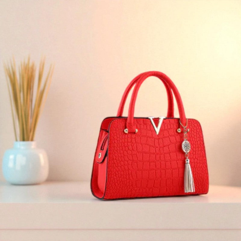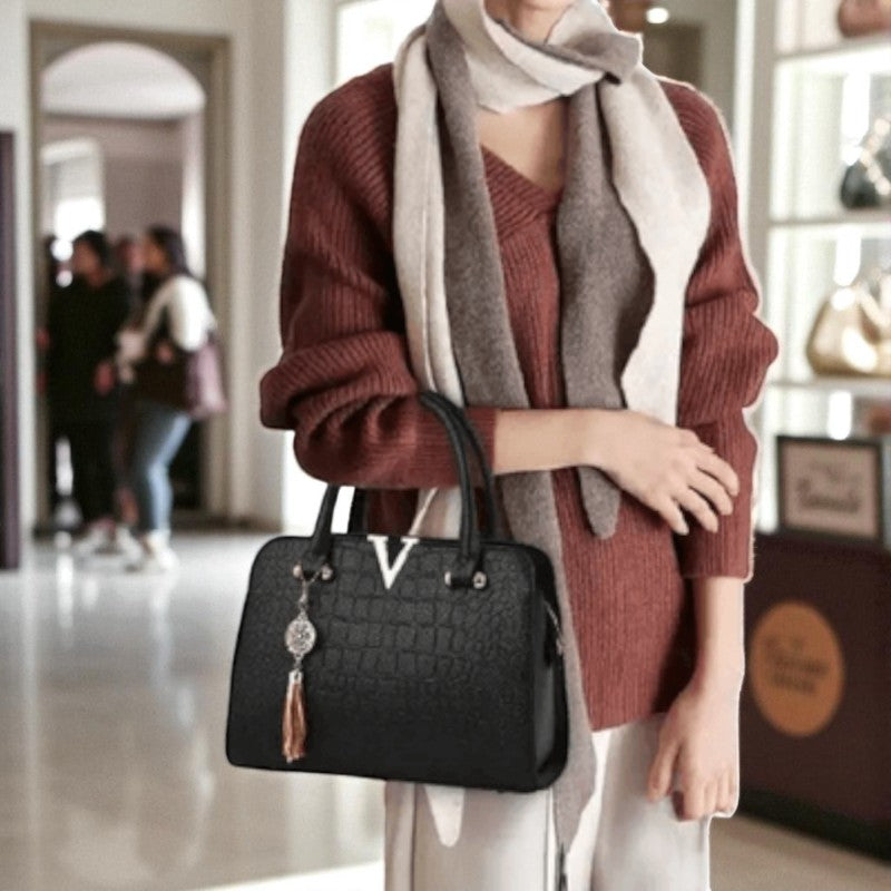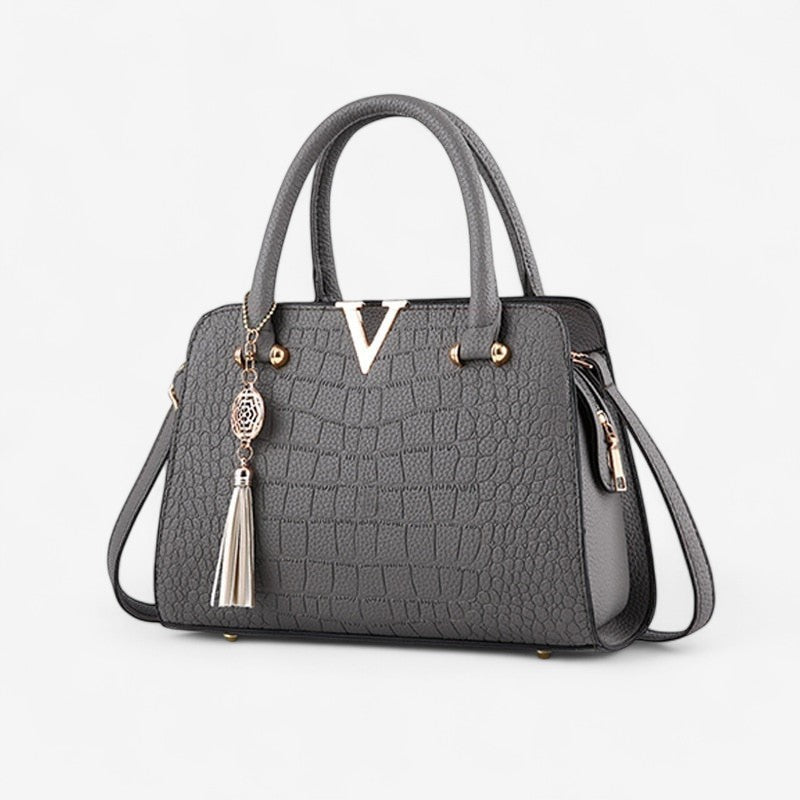 Camilla-vesken har en krokodillemønstret overflate laget av PU imitert skinn, kombinert med et mykt polyesterfôr for holdbarhet. Med justerbar stropp og flere rom er den designet for daglig bruk eller spesielle anledninger. Den strukturerte utformingen gjør at vesken står oppreist, og passer dermed både til hverdagsbruk og mer formelle settinger.