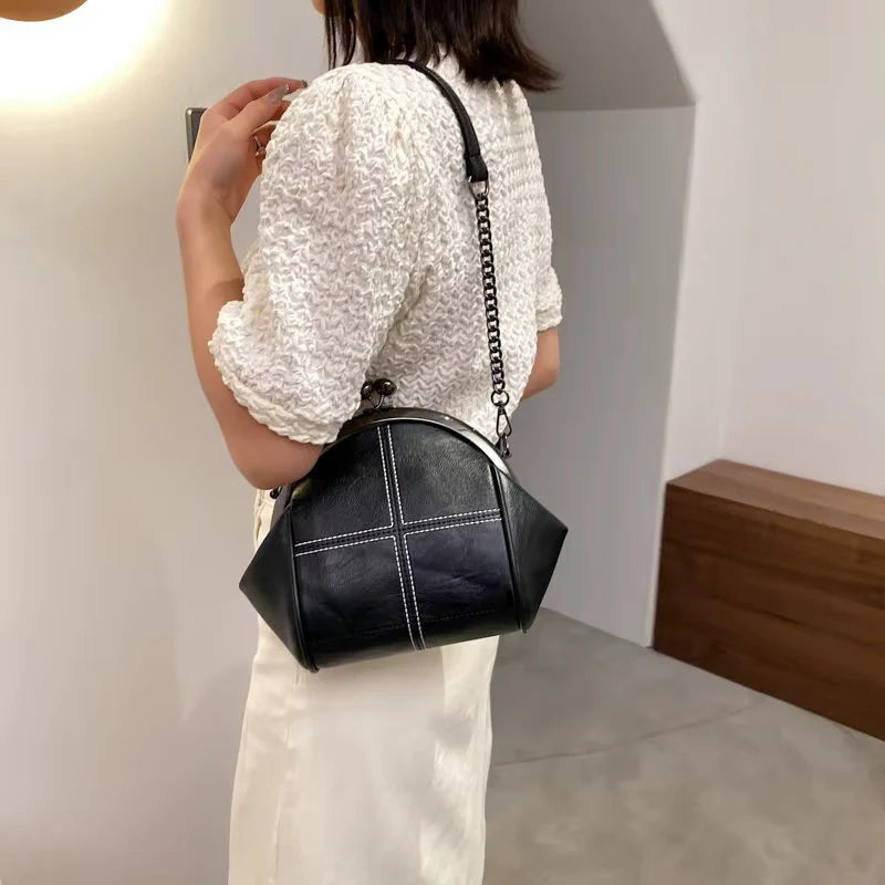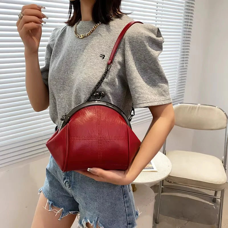 Carina crossbody-vesken kombinerer stil og funksjonalitet med sitt trendy kjede og sikre clamshell-lukking. Den romslige innsiden kan romme alle dine daglige nødvendigheter, ideell for jobb, utflukter eller uformelle anledninger.