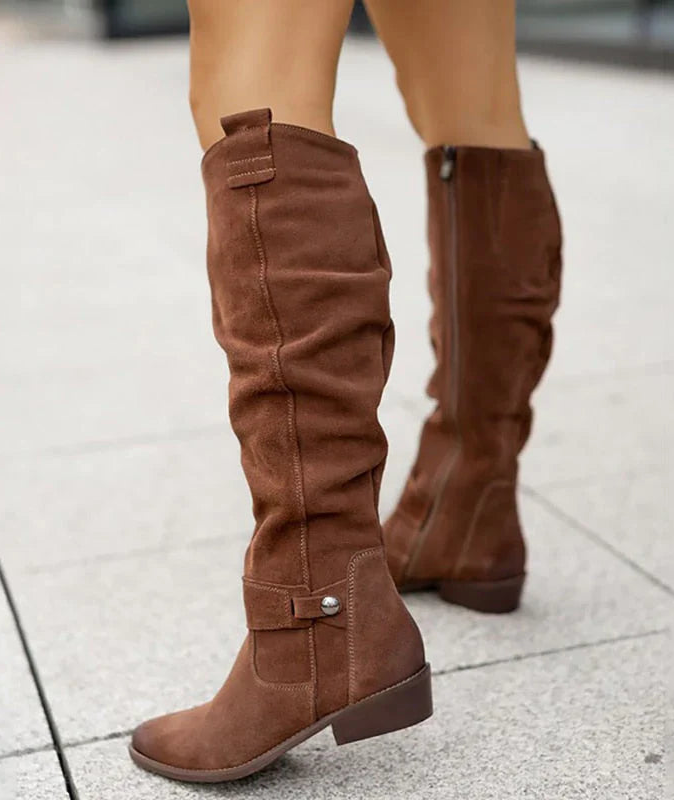 Disse støvlene er designet for komfort, og har en lav blokkhæl som gir stabilitet for bruk hele dagen. Den brukervennlige designen, med glidelås i siden eller strikk, sikrer en tettsittende passform samtidig som den tilbyr uanstrengt stil. Perfekt for ulike anledninger, de kombineres vakkert med skjørt, kjoler eller andre uformelle antrekk, og blander komfort med sofistikert stil.