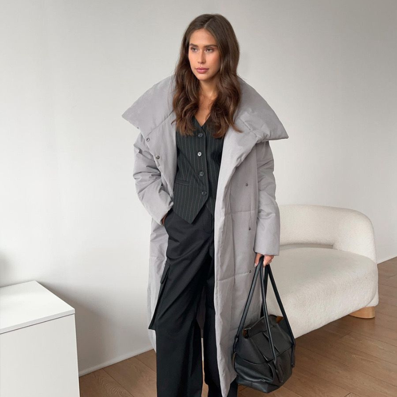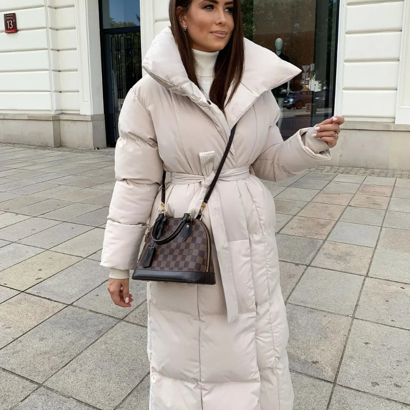 Clara – Kåpe med lange ermer, midjebelte og ståkrage
