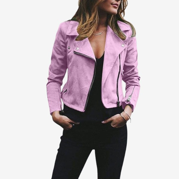 Clara-jakken med lange ermer har turn-down krage og glidelås foran, med en smal passform for et moderne og elegant utseende. Den allsidige designen gjør det enkelt å bruke den over både avslappede og semi-formelle antrekk.