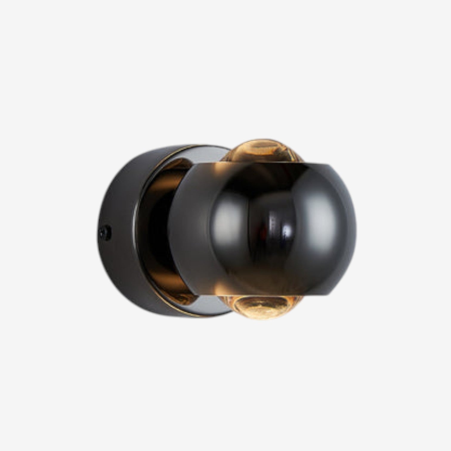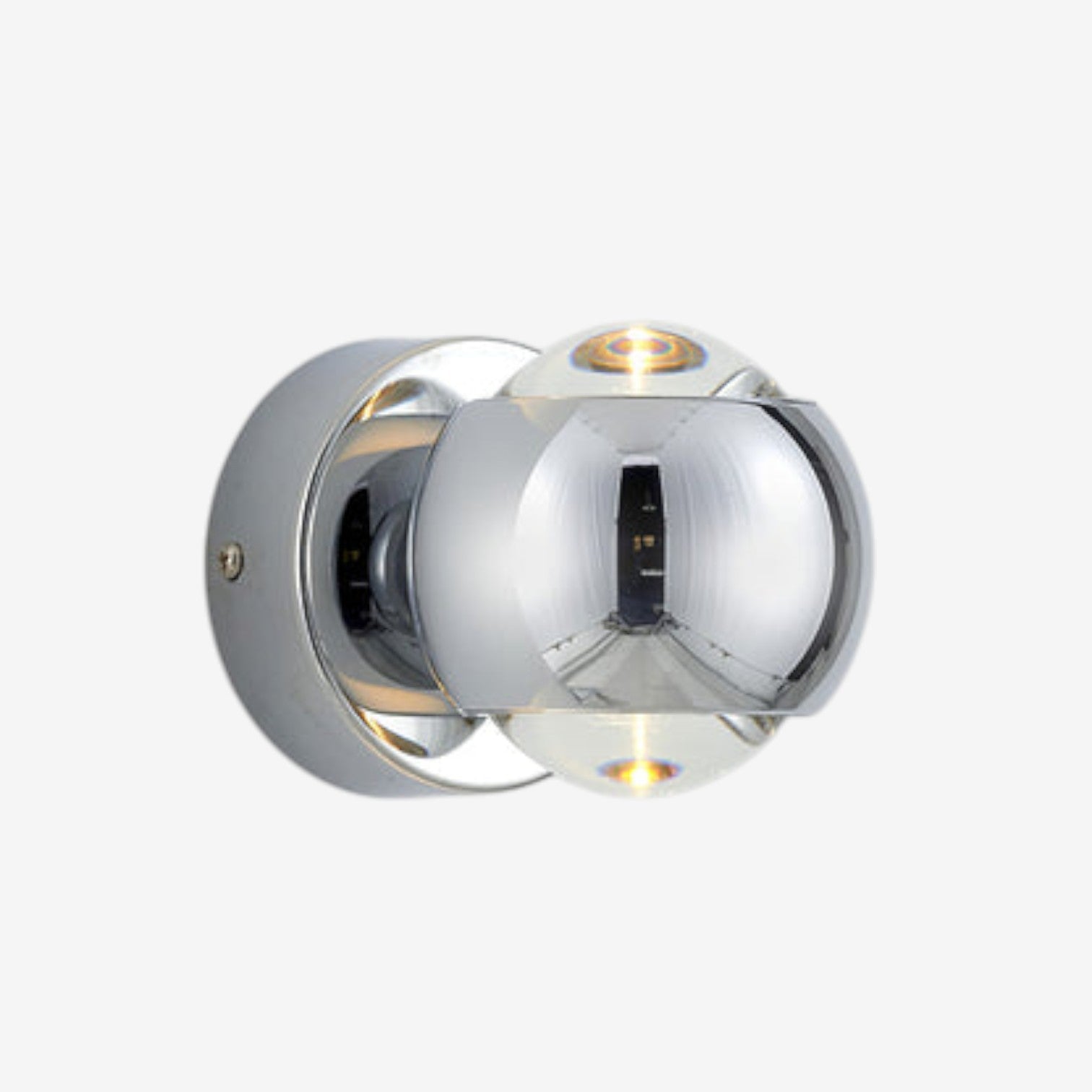 Denne vegglampen er laget av aluminium og krystall. Den har en sylinderformet, vertikal form med en integrert LED-lyskilde. Designet for veggmontering, den er tilgjengelig i fem fargevarianter og to lysfarger.