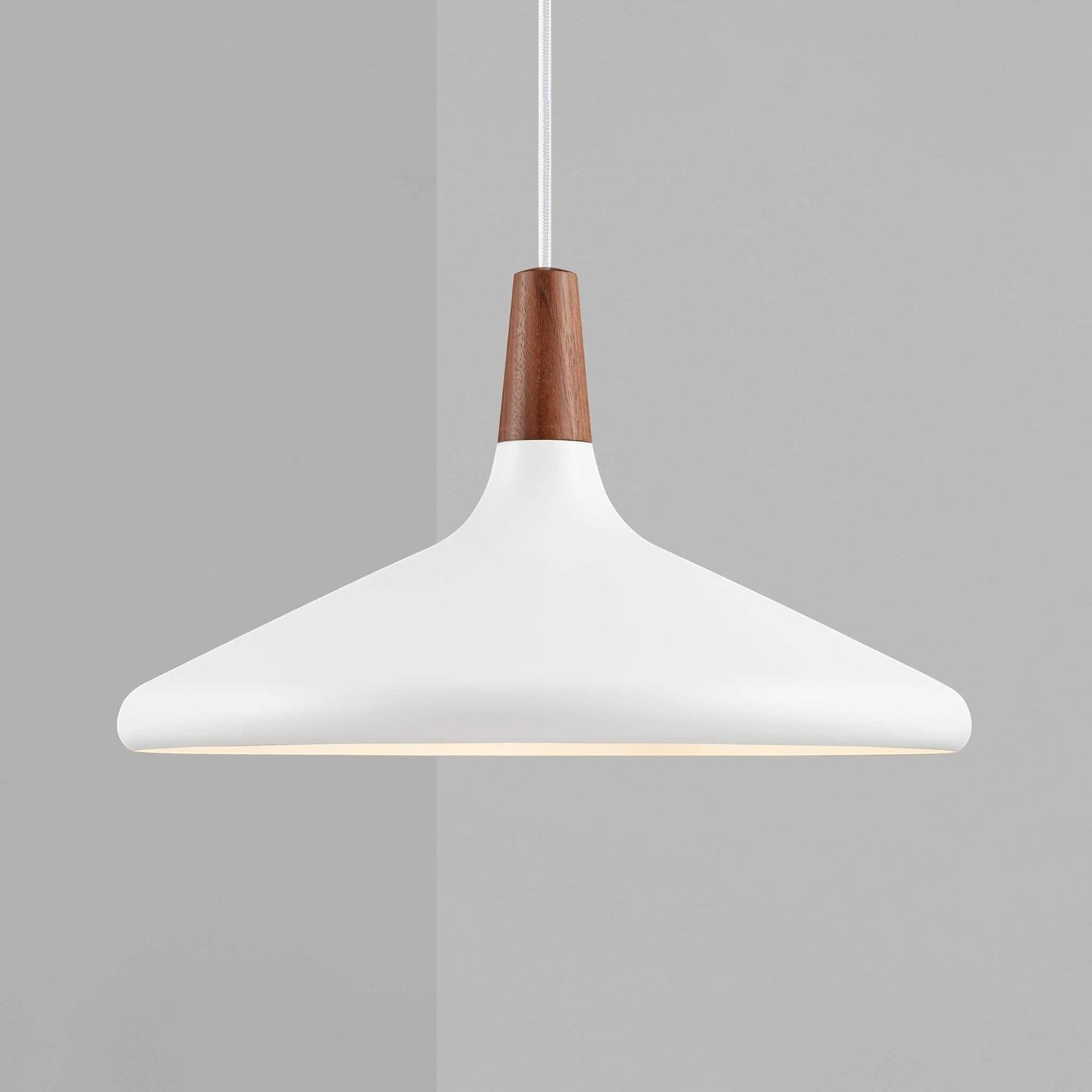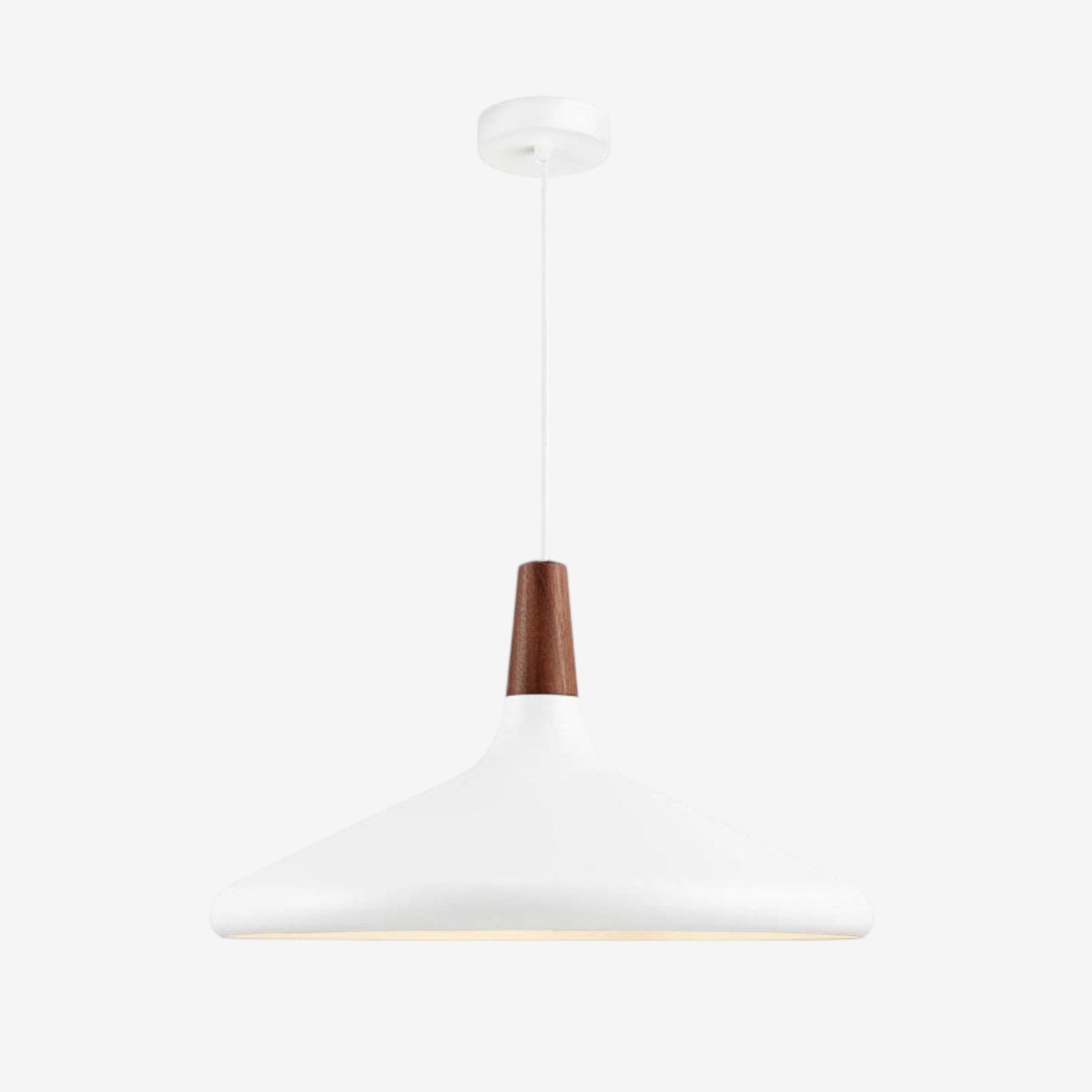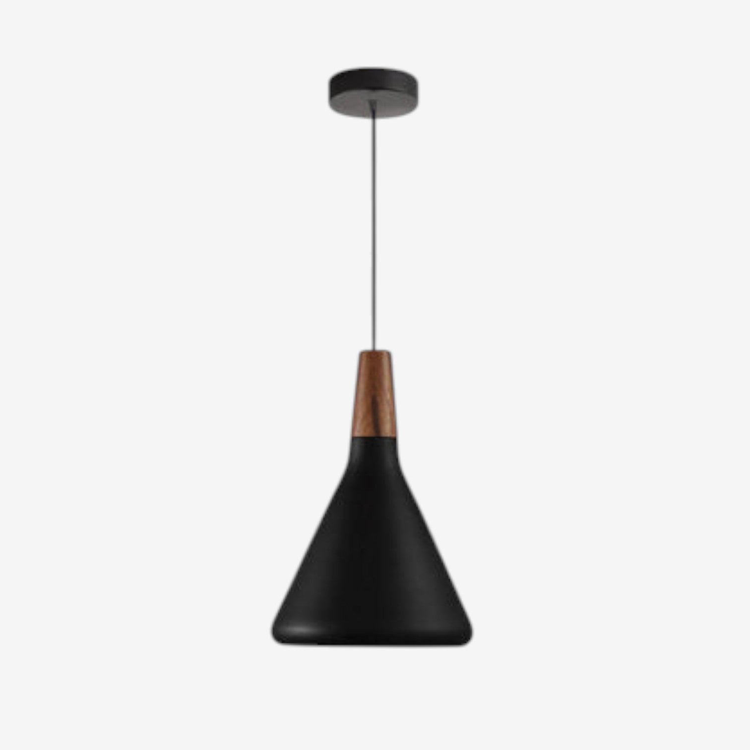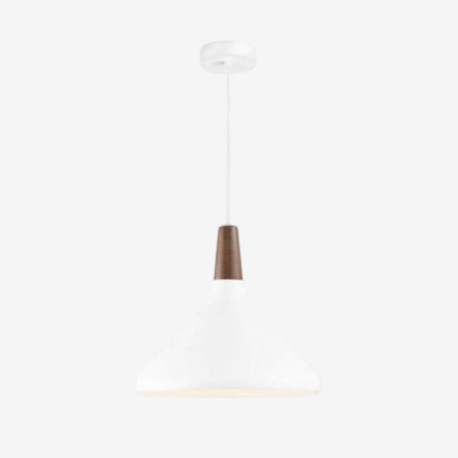 Denne pendellampen har en sylindrisk jernskjerm med tredetaljer. Den inkluderer et takfeste og en 150 cm opphengskabel. Utsiden har en ensfarget finish og er designet for innendørs bruk.