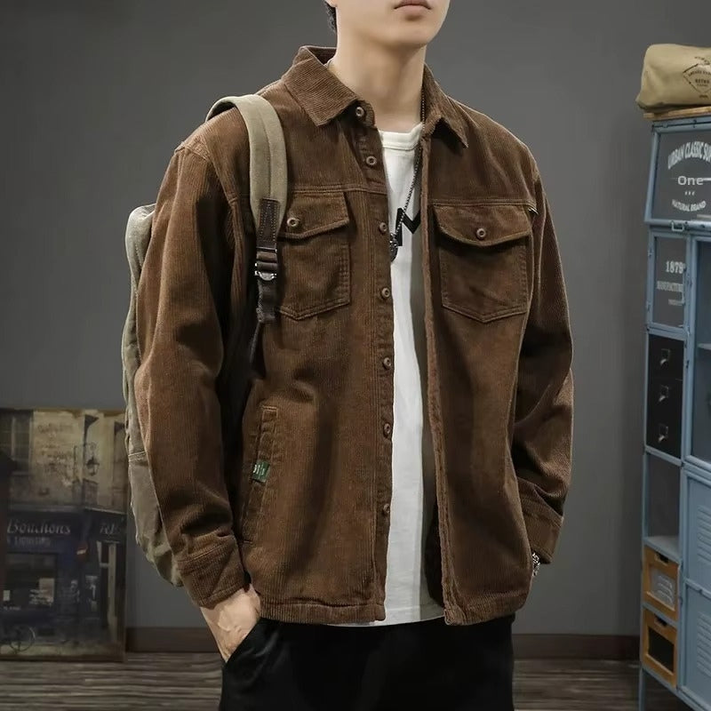 Den langermede Espen-jakken har nedbrettet krage og knappelukking. Den har to brystlommer og to sidelommer for ekstra oppbevaring. Designet for hverdagsbruk og passer til uformelle eller halvformelle anledninger.