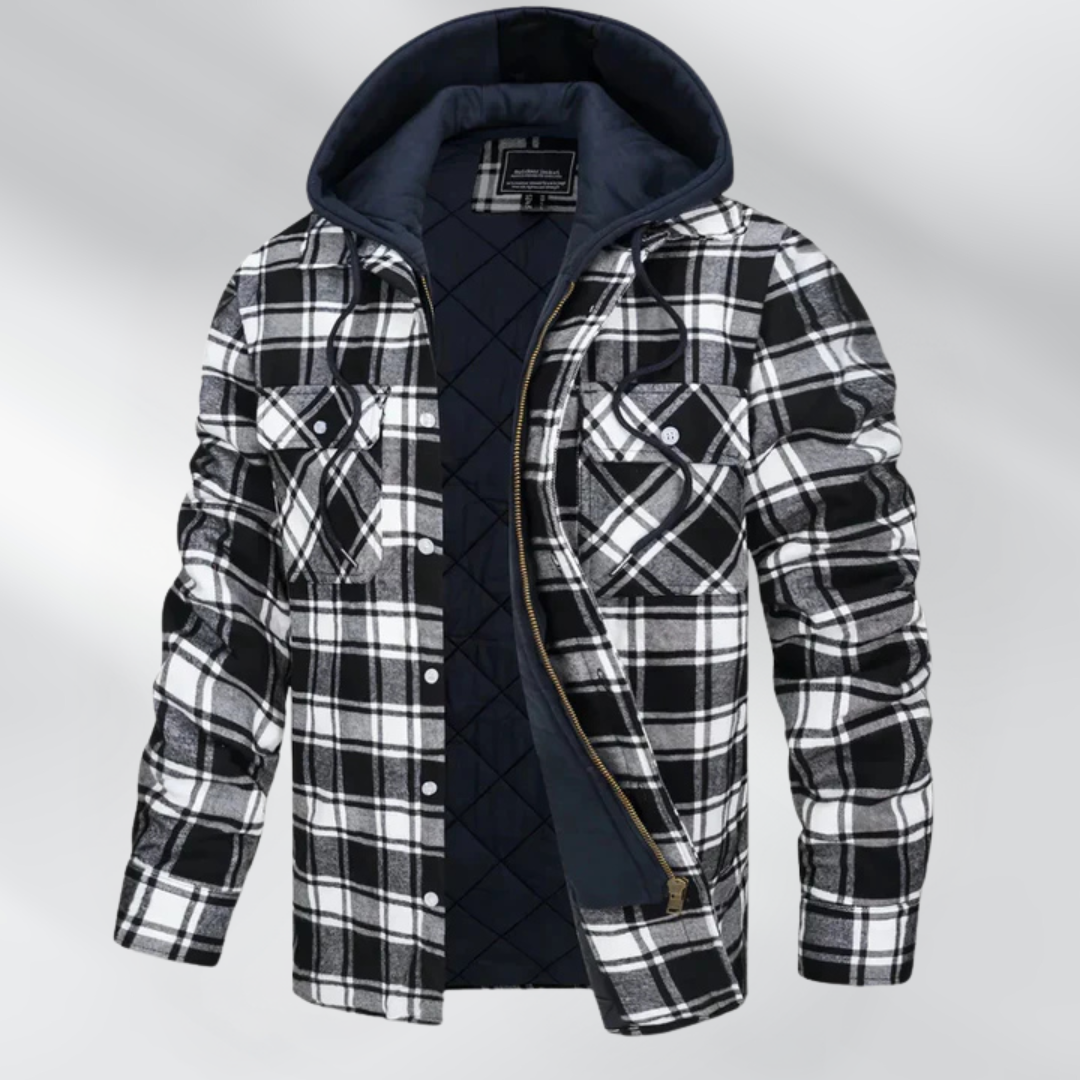 Ethan - Rutete jakke med hette og dobbel lukking