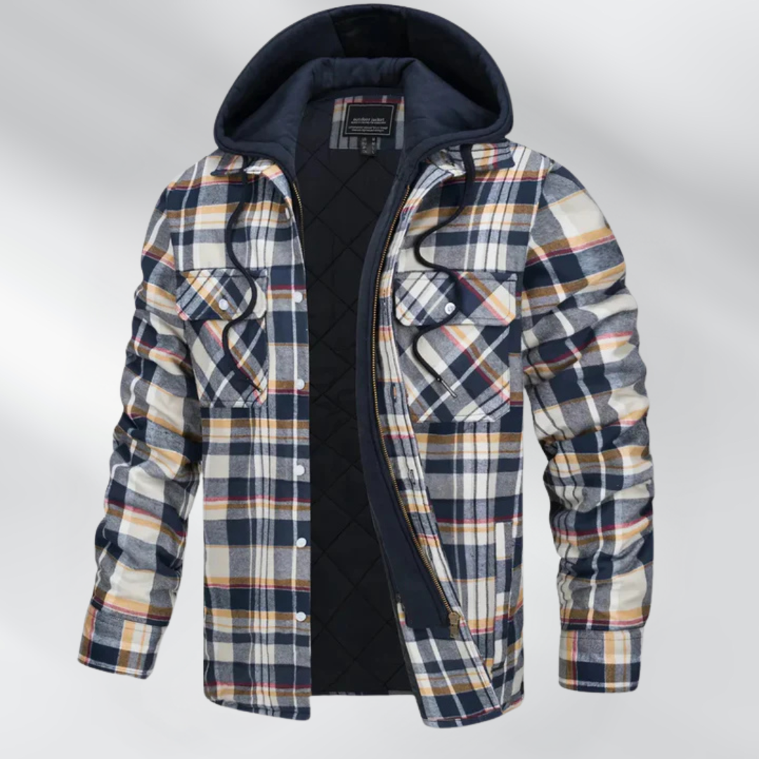 Ethan-jakken er en stilig og funksjonell jakke med klassisk rutete design og hette for ekstra varme. Flere bryst- og sidelommer gir praktisk oppbevaringsplass til det du trenger. Kombinasjonen av knapper og glidelås gjør jakken allsidig, og den kan brukes både til hverdags og utendørs. Jakken er laget for å vare, og den er slitesterk og pålitelig ved vanlig slitasje.