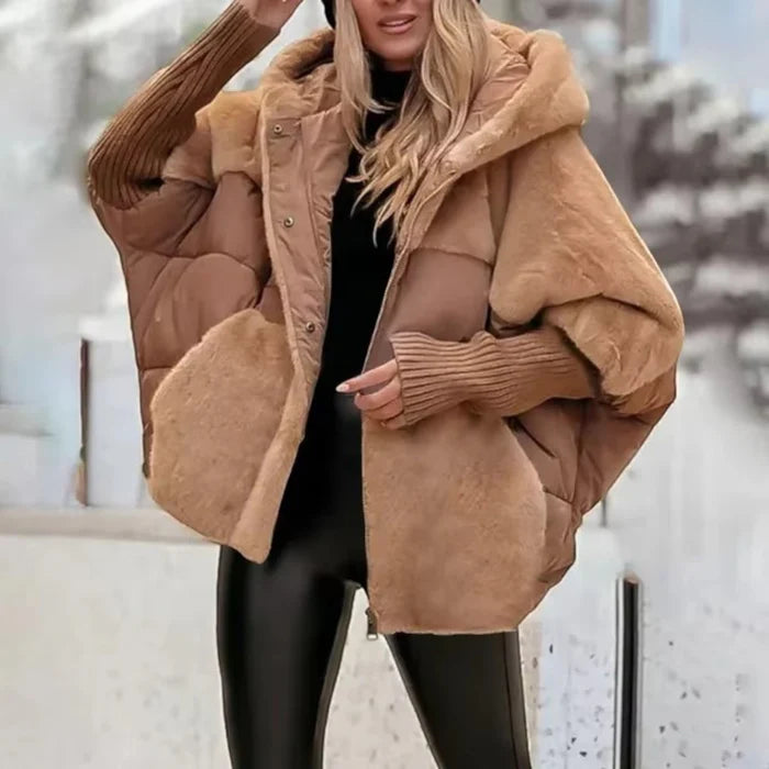 Fenna – Polstret Jakke med Hette og Ribbestrikkede Ermer