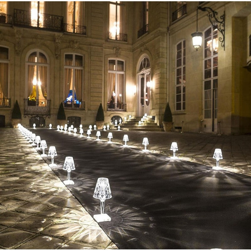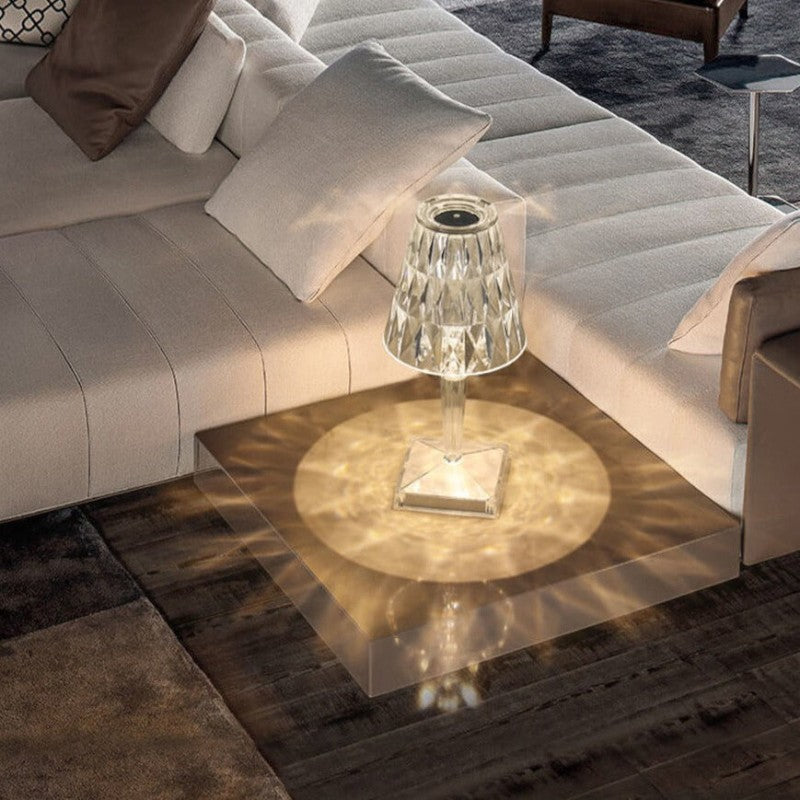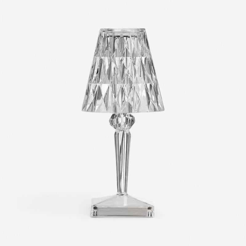 GlowNest bordlampe har et diamantkuttet akryldesign som skaper dekorative lysmønstre på omgivende flater. Med tre berøringsdempbare lysinnstillinger og USB-oppladbart batteri gir den både stil og bekvemmelighet til soverom, stuer eller kontorer. Kompakt og allsidig passer den sømløst inn i ulike interiørstiler.