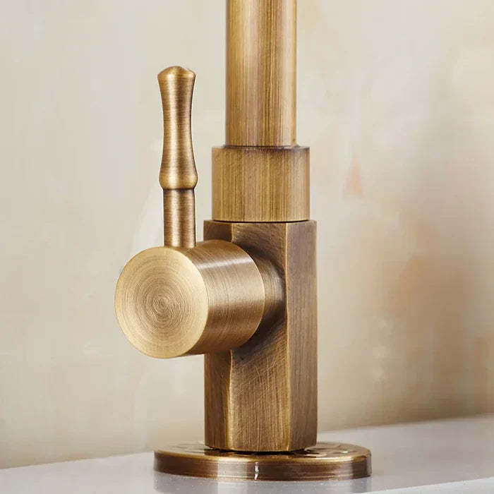 GoldenCurve er både estetisk og praktisk. Svanehalsdesignet gir god plass til å fylle og vaske store gryter, mens den antikke messingfinishen ikke bare bidrar til sjarmen, men også sikrer langvarig korrosjonsbestandighet. Kranen er laget av materialer av høy kvalitet og garanterer jevn, dryppfri drift.