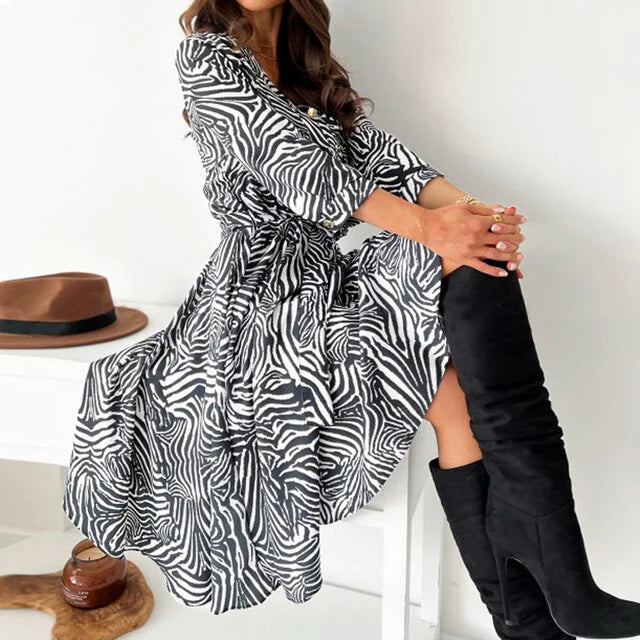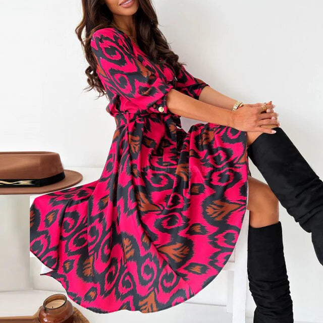 Greta Vintage-kjole har en tidløs sjarm med sine smigrende lange ermer og V-hals, noe som skaper et både sofistikert og komfortabelt uttrykk. Denne kjolen er ideell for formelle sammenkomster, og gjør det enkelt for deg å skille deg ut med både stil og eleganse. Enten du skal på feiring, fest eller et elegant arrangement, sørger denne kjolen for at du gjør et minneverdig inntrykk samtidig som du føler deg selvsikker.