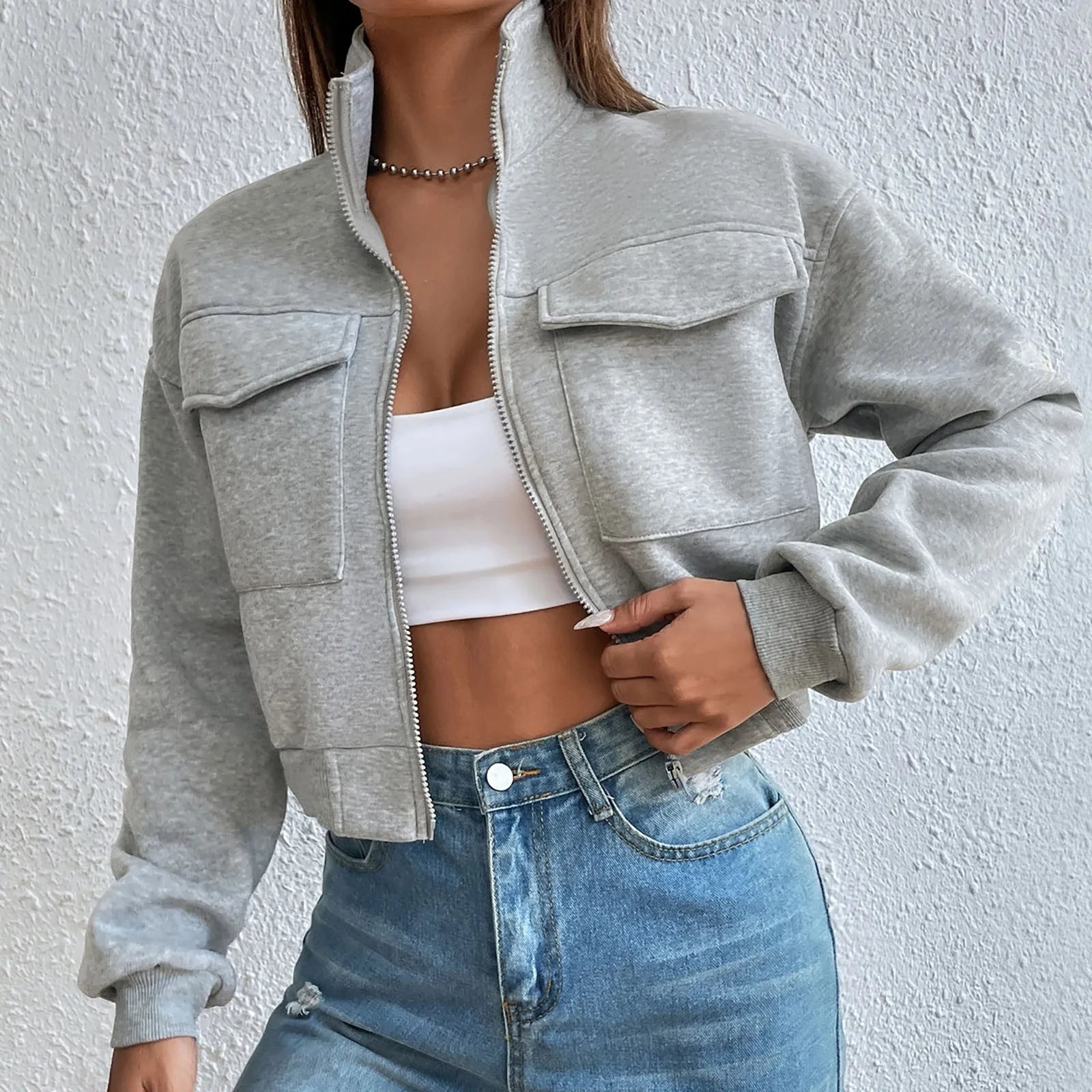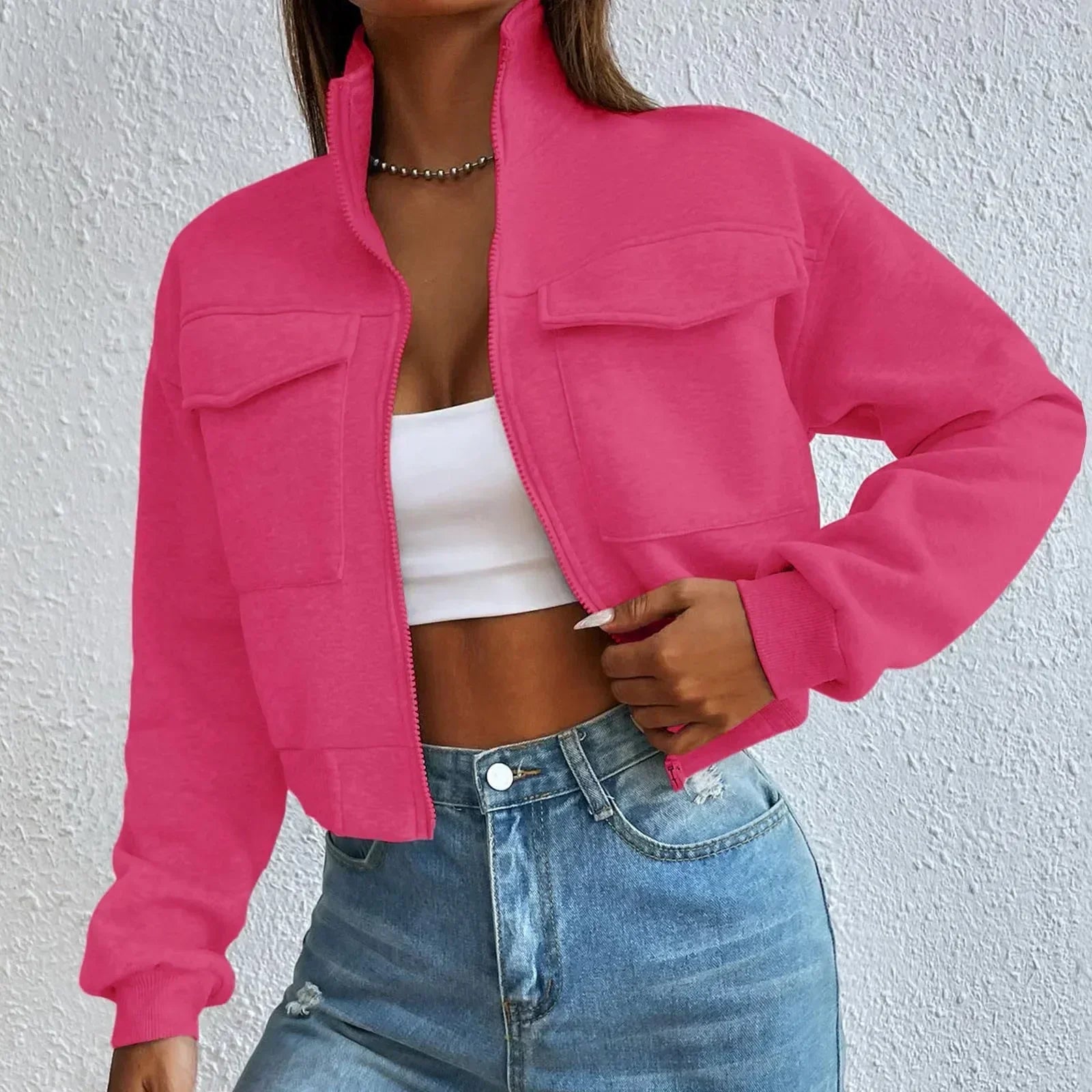 Den smigrende korte silhuetten passer perfekt til jeans med høy midje, skjørt eller leggings, noe som gjør den til et allsidig plagg som kan brukes både opp og ned. Designet er en funksjonell, men moteriktig detalj som gjør det enkelt å friske opp et antrekk.